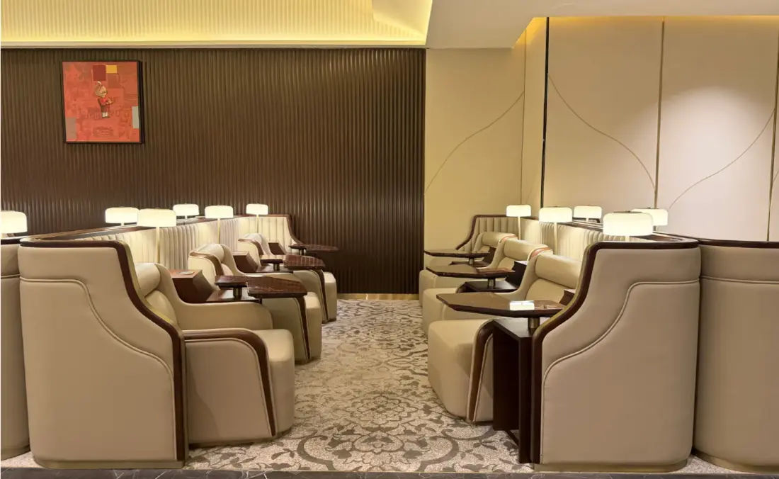 Encalm Lounge is a lush oasis in the middle of an airport. We have a very spacious half-level layout and interior space to provide silence and comfort to the customer.