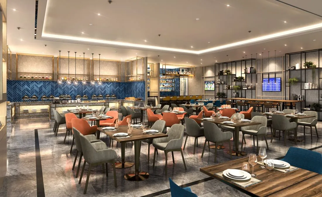 This lounge was built for comfort and efficiency and has a contemporary and welcoming look. As a restaurant interior fit-out company, we ensured the design was executed smoothly by including ergonomic chairs and moving light fixtures to the desired positions.
